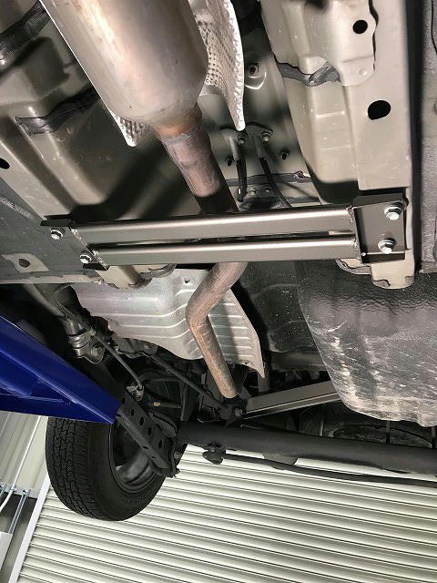 主にボディ底部の左右に取り付けることで車両の横方向の剛性をアップします