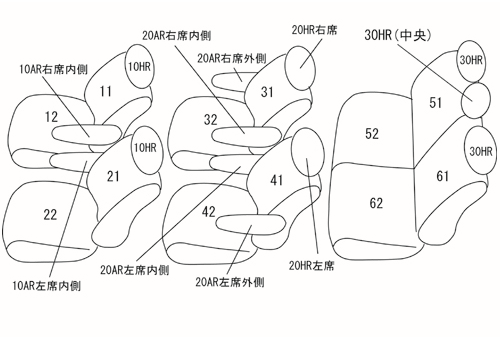 | 適合形状 | シートバックティッシュポケット装備車 2列目助手席側サイドリフトアップ (シートが回転して車外に出るタイプ) ※シートカバーを装着することで3列目シート跳ね上げ時、車体側にロックをかける際、シートを車体側に押すサポートが必要になります。 | ||||