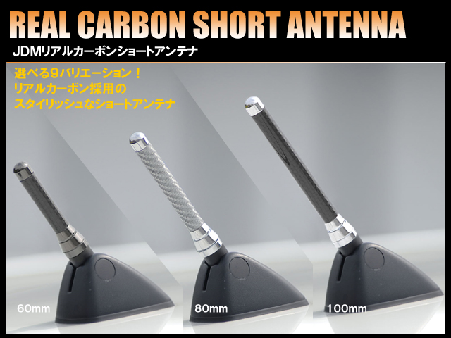 サイズとカラーで9種類から選べるカーボンアンテナ。リアルカーボンを採用した高級感の高いアイテムです。